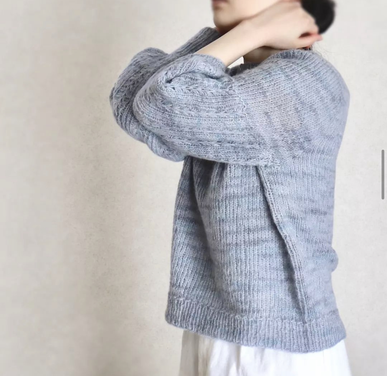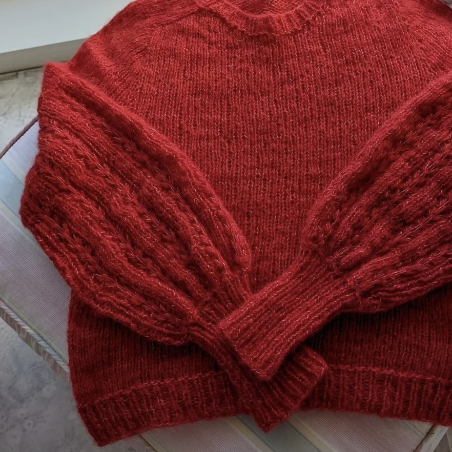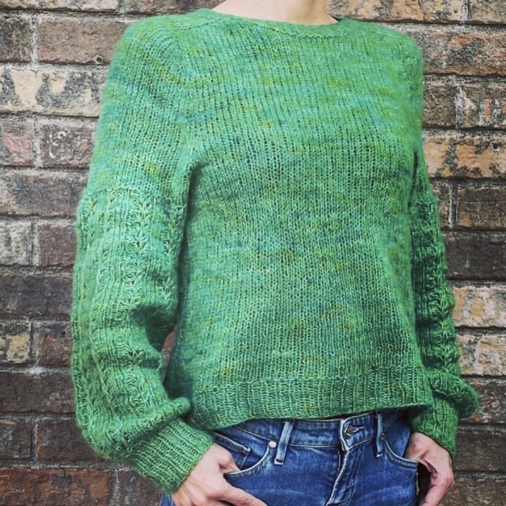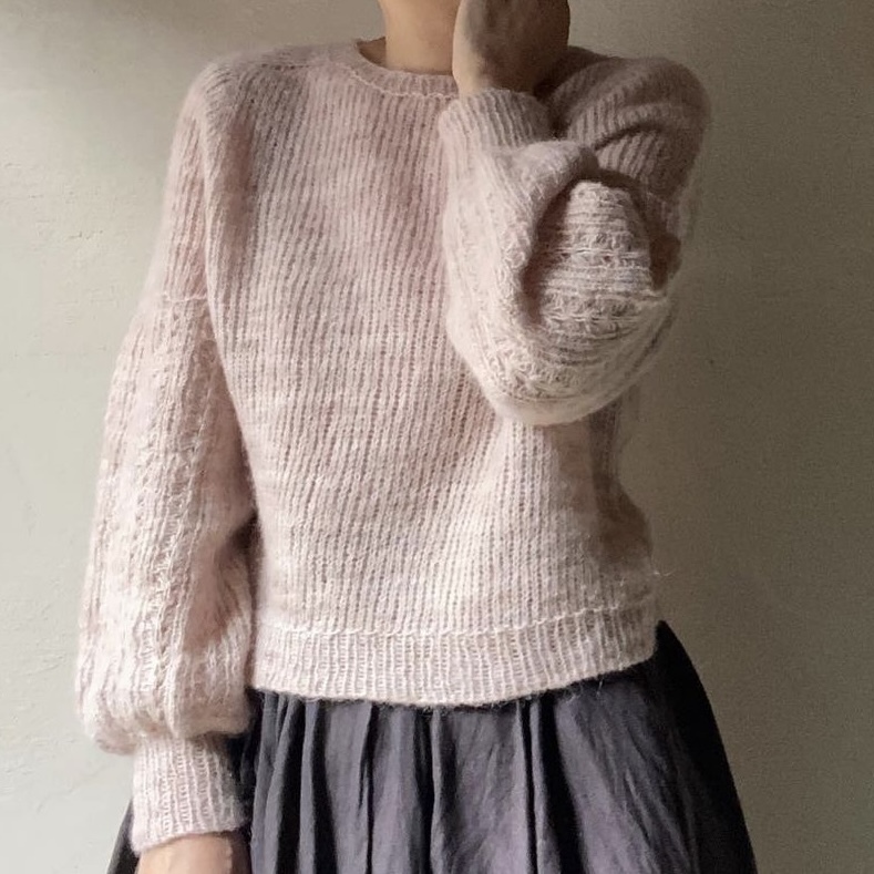雖然它是 Fingering Weight,但蓬鬆空氣感與幼羊駝長毛纖的交織,讓它可以使用更大的針號編織,使用 2~3 絞即可完成成人女性長袖毛衣,織品透氣輕盈保暖又舒適,是一款擁有獨特魅力又少見的特殊規格美線。