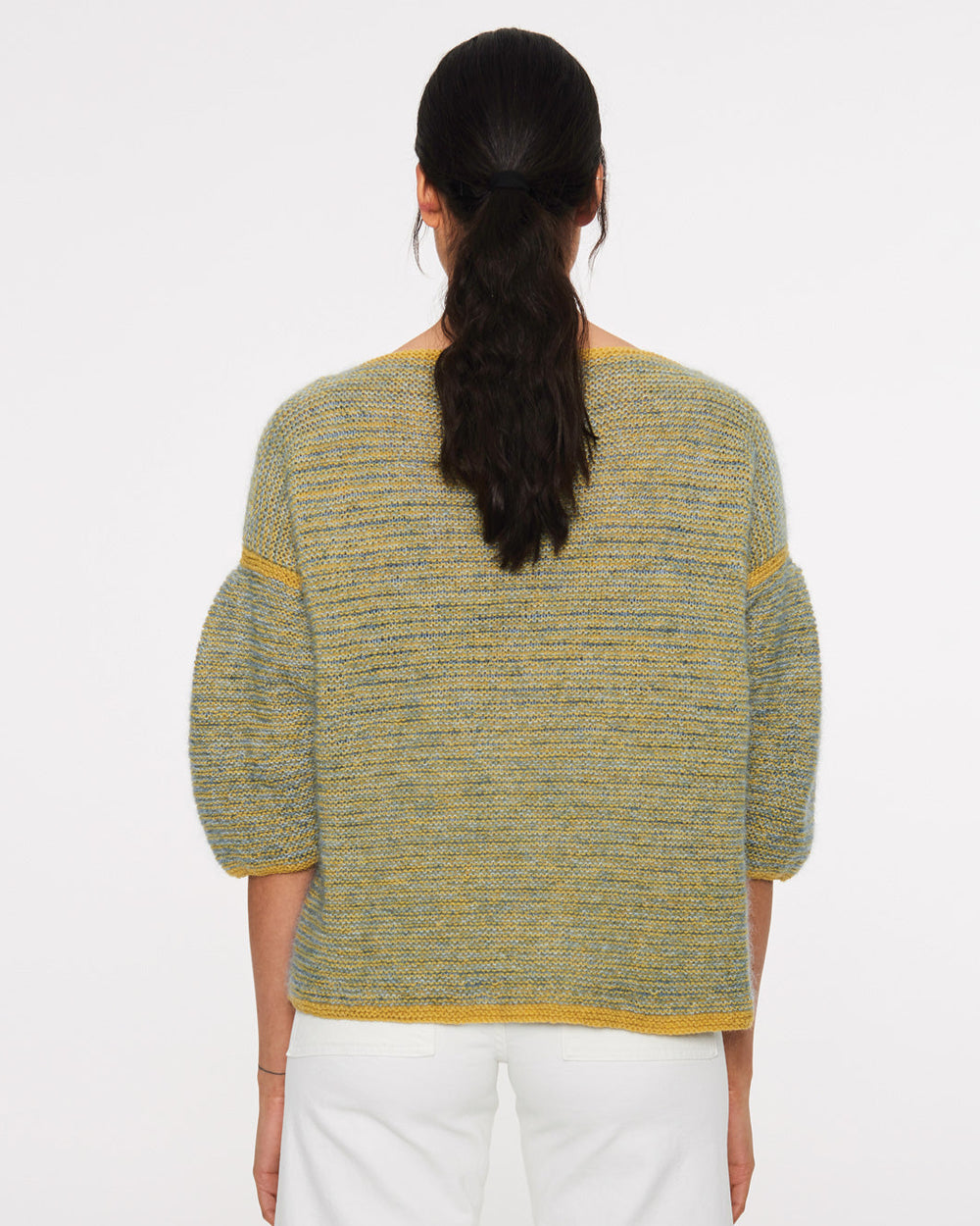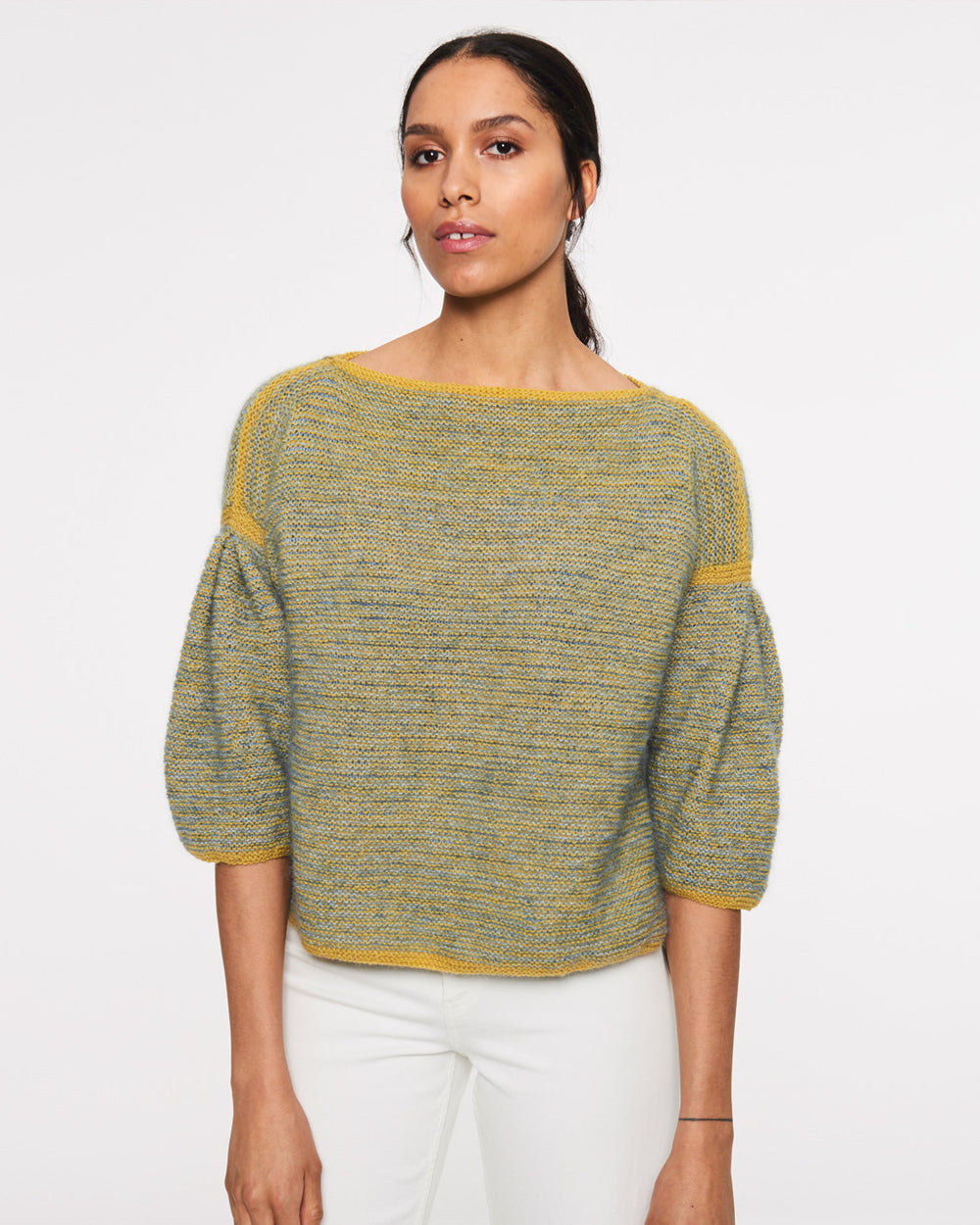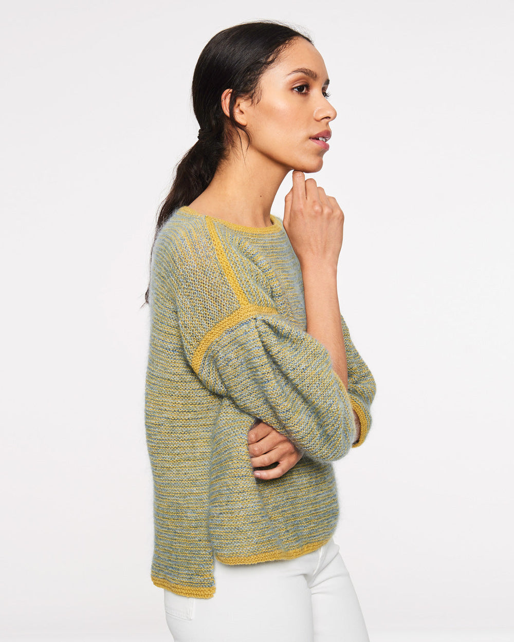 GRUNNET 套頭毛衣是從下往上片織後再縫合側邊完成。