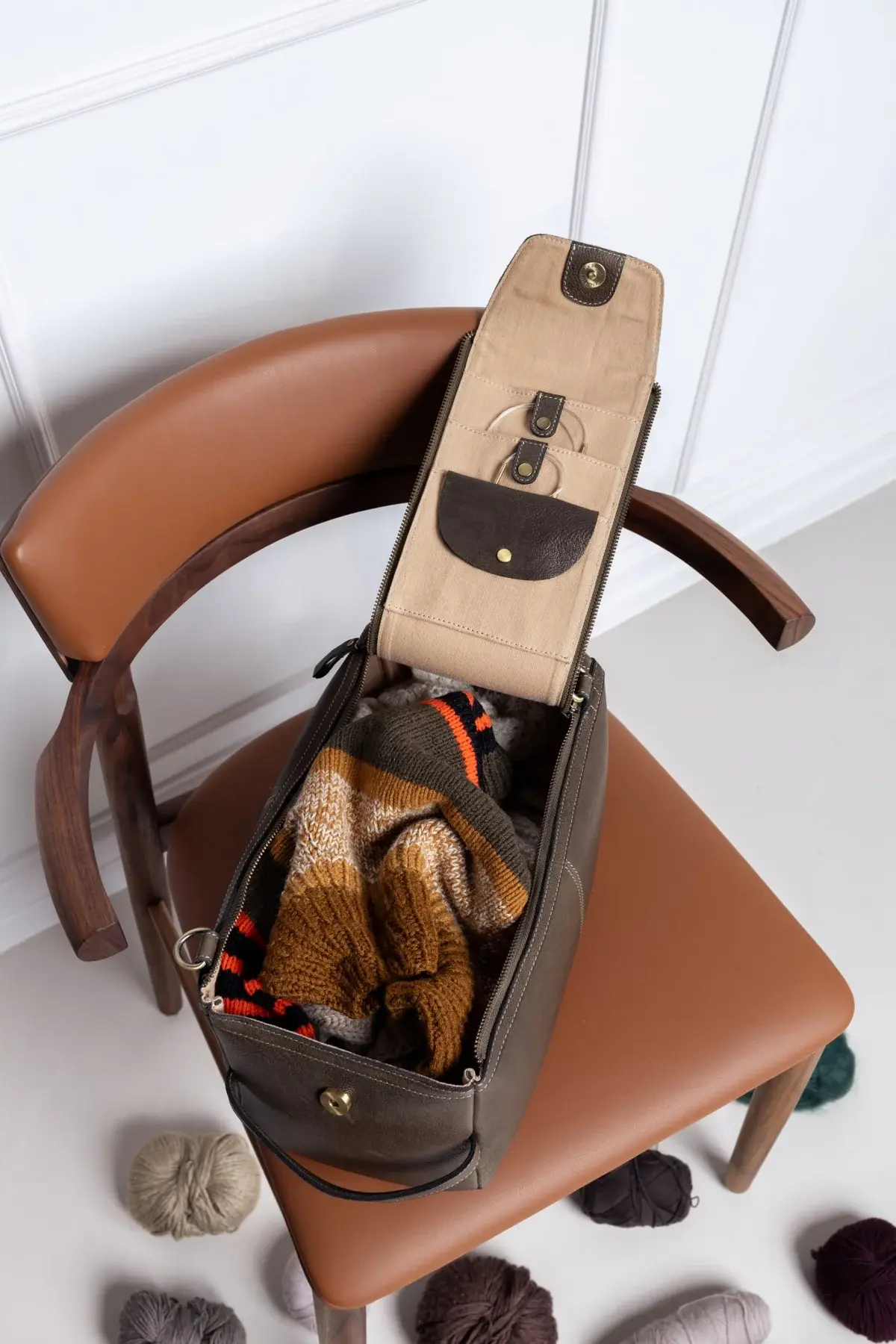 一樣由柔軟皮革製成,專為毛線愛好者和編織愛好者設計。這款別緻且多功能的包款經過精心設計,讓你的工具與線材可以有組織的收納,增加你編織時的樂趣。