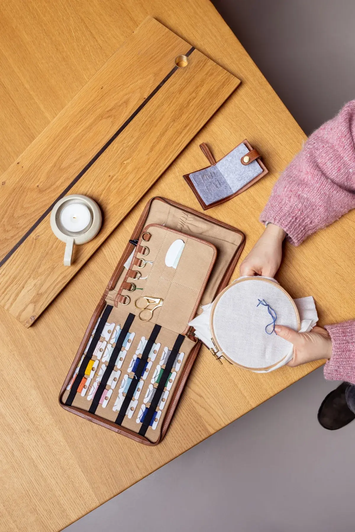 專為刺繡愛好者所設計的刺繡專用收納包,特別分層可以整齊收納分裝好的繡線分裝片,整數繡線,圓周17cm以內的繡框,縫針等小工具!